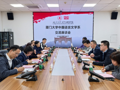 2025年10月28日,厦门大学中国语言文学系党委书记黄宇霞一行来冰球突破官网开展调研座谈,并举办博士生招聘会。冰球突破mg正规官网党委书记傅其林教授主持会议。厦门大学中国语言文学系党委书记黄宇霞,古代汉语教研室主任陈明娥副教授,中国语言文学系师雅惠副教授,助理教授胡行舟,人事秘书吴志友,辅导员李莹斌,以及冰球突破mg正规官网党委副书记兼纪委书记银浩副研究员,汉语言文字学教研室主任王长林副教授,科研管理办公室曾玉洁,博士生辅导员吴光芬,外事秘书唐菾,博士生代表出席会议。