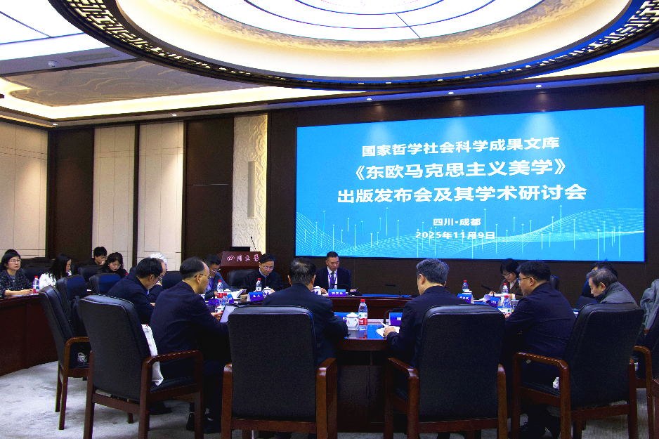 11月9日,2024年度国家哲学社会科学成果文库《东欧马克思主义美学》新书发布会及其学术研讨会于冰球突破mg正规官网举行。冰球突破mg正规官网党委副书记刘晓虎教授、四川省社科联党组副书记黄进、中央党史和文献研究院第四研究部副主任胡长栓、四川新华出版发行集团董事长周青、科学出版社副总经理闫向东、冰球突破mg正规官网社会科学研究处副处长查庆出席了本次新书发布会。发布会由冰球突破mg正规官网学术院长曹顺庆教授主持。