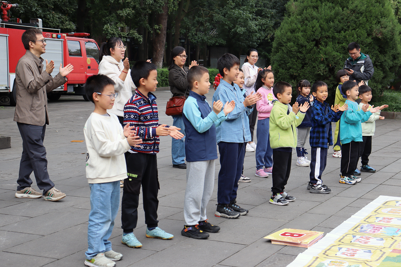 第二项活动是三国知识问答及团建。家庭分为A、B组,进行挑战赛,结合日常的积累与游览过程的学习,各队伍分工协作、相互鼓励来完成任务,现场氛围热烈,大人孩子,满是笑声与掌声。